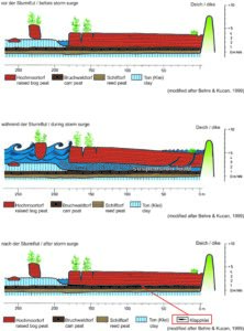 Since the beginning of the Holocene, the northwest German coast has been shaped by the rising sea level, resulting in a general progradational shift of the coastline. Accordingly, the Holocene sedimentary sequence comprises peat layers, brackish-lagoonal, and marine deposits. In addition to gradual changes, extreme events such as storm surges have contributed to coastal development and must be considered to better understand the region’s landscape evolution.